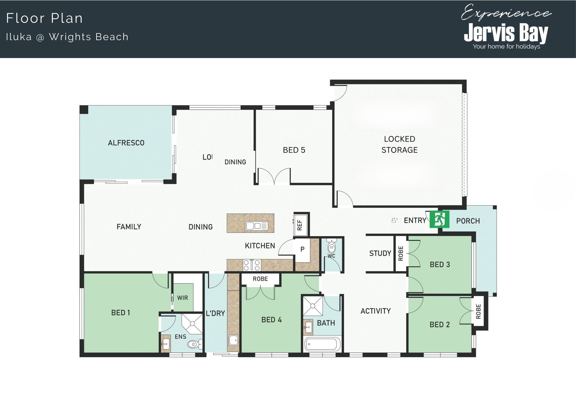 - Bed 5: Queen bed with ducted air conditioning and wardrobe rail