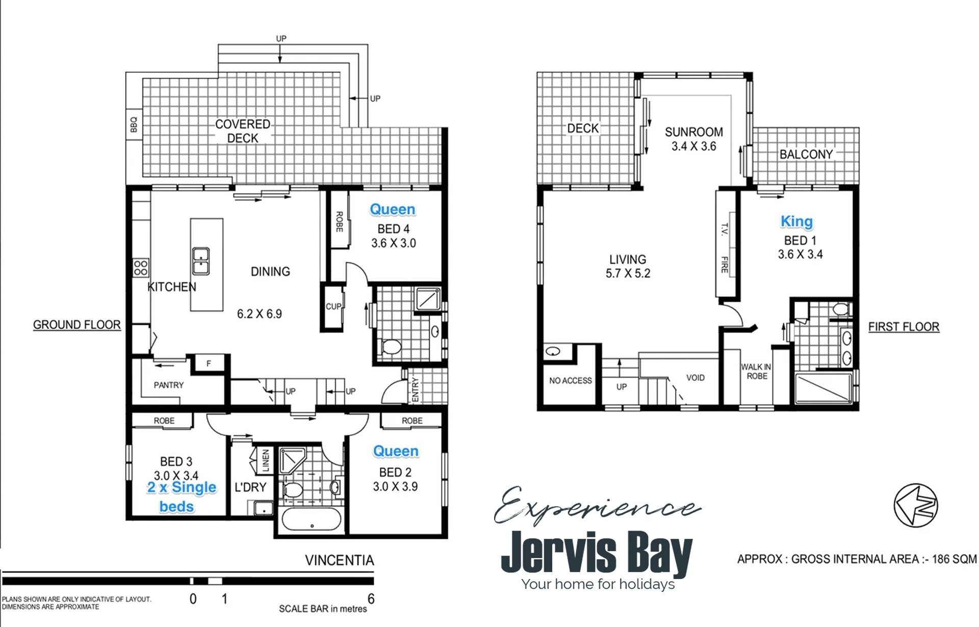 - Bed 4 top floor: King bed with balcony, TV, ensuite, ducted heating and cooling and built-in wardrobe