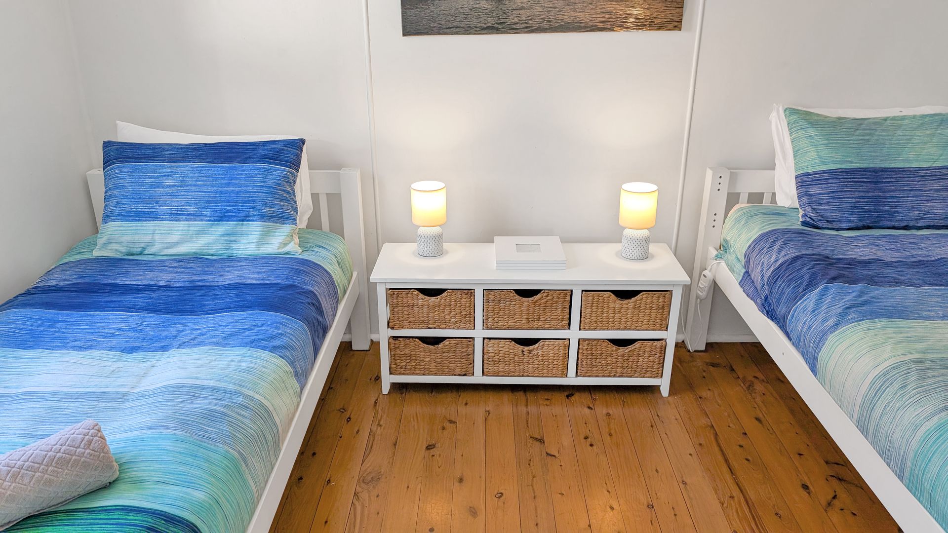 - Bed 3: 2 Single beds, hanging rail and a ceiling fan