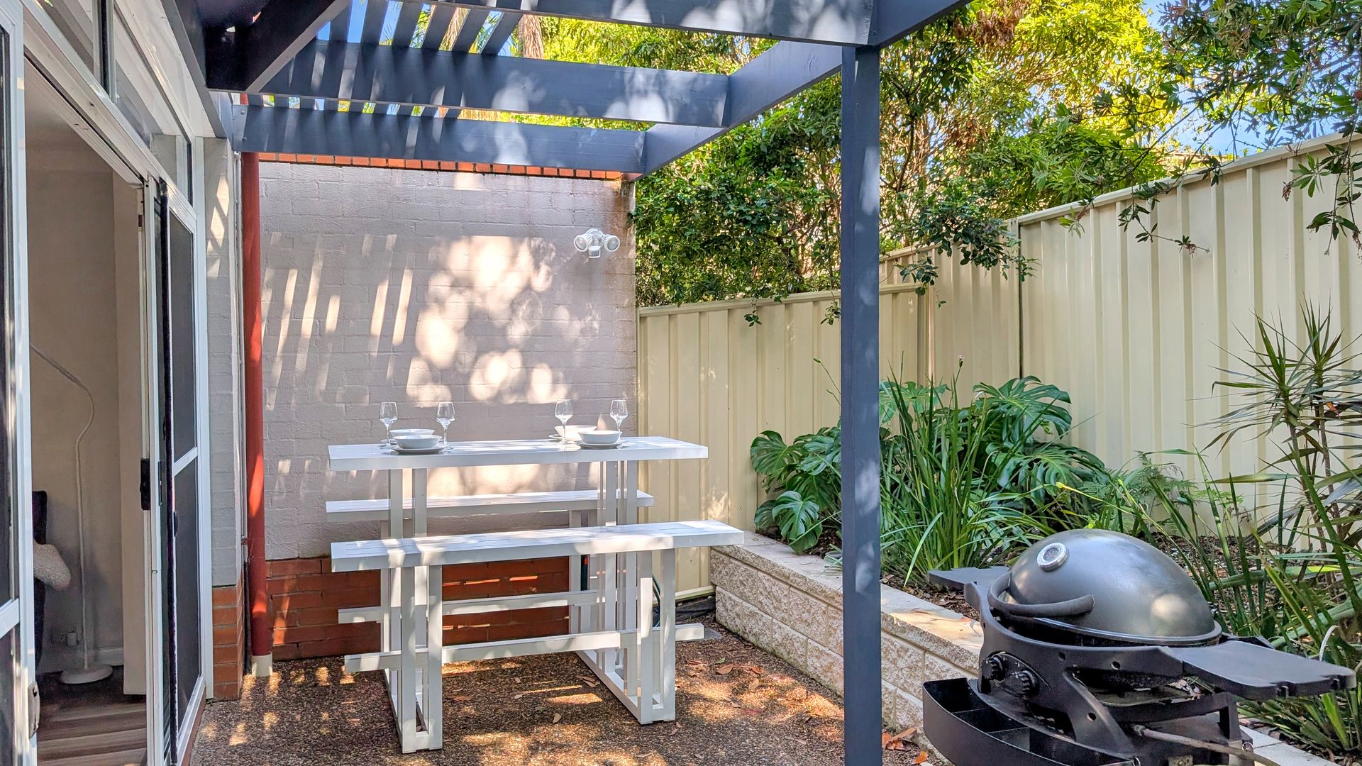 - Covered entertaining area: No (partially shaded but not covered)
